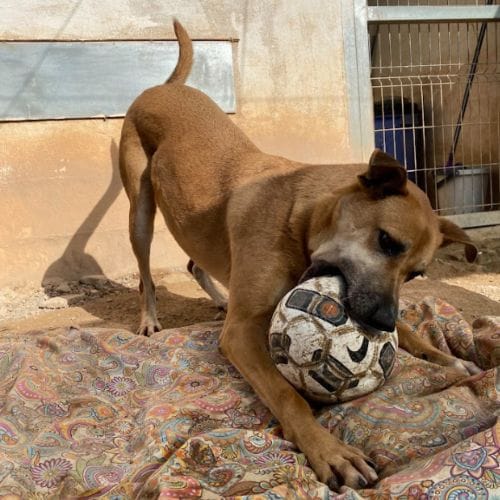 Tomás es un perro mestizo que llegó a nuestro refugio de animales en 2018. Fue encontrado abandonado en un pueblo de Granada, sin chip ni identificación, muy delgado y con evidentes signos de abandono. Desde entonces, este maravilloso perro forma parte de nuestra familia en el refugio, esperando a encontrar su hogar definitivo.